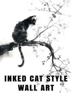 Beautiful Ink Style Cat Wall Art, Best Wall Decoration.